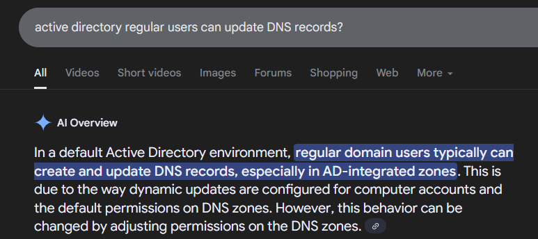 - Another compromised user (carole.rose) that has permission to create DNS records and modify the SPNs of the sqldev account. This is a crucial.